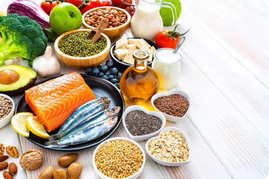 식이섬유와 좋은 지방 식품의 예시는 아래와 같습니다.